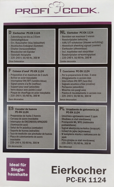 ProfiCook PC-EK 1124 Eierkocher edelstahl/schwarz