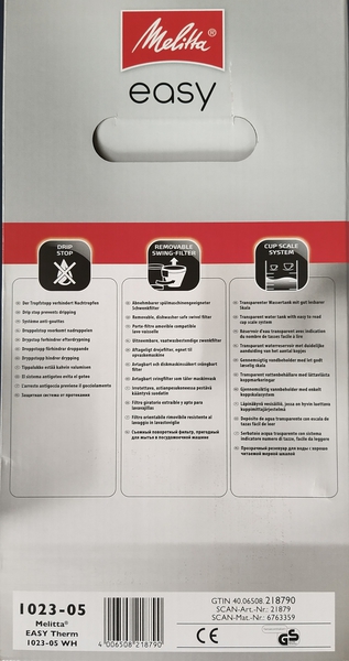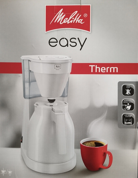 Easy Therm abnehmbarer Schwenkfilter, herausnehmbarer Filtereinsatz, Tropfstopp, Thermkanne mit Ein-Hand-Bedienung und Durchbrühdeckel, transparente Wasserstandsanzeige, beleuchteter Ein-/Ausschalter, automatische Endabschaltung nach 15 Min.