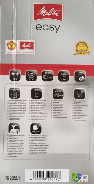 herausnehmbarer Filtereinsatz, Nachtropfsicherung, doppelwandige Thermokanne mit Aromaverschluss, Wasserstandsanzeige, Ein-/Ausschalter mit Kontrollleuchte, automatische Abschaltung